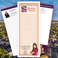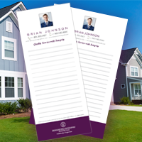 We print all popular sizes with your own custom design and information. Plus, we can print and mail your notepads for an additional 65 cents per piece for processing and postage (200 notepads minimum).