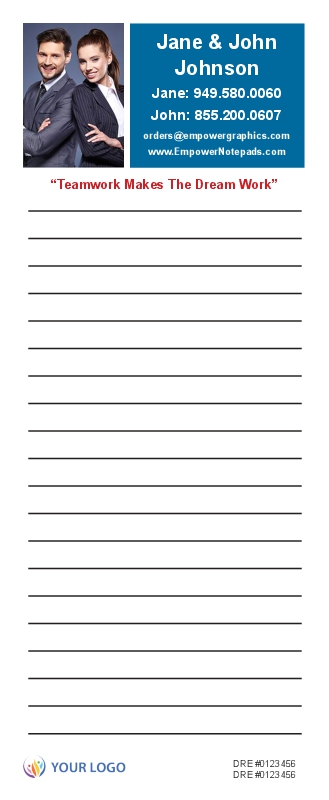 - Full color custom notepads w/ your logo and photo